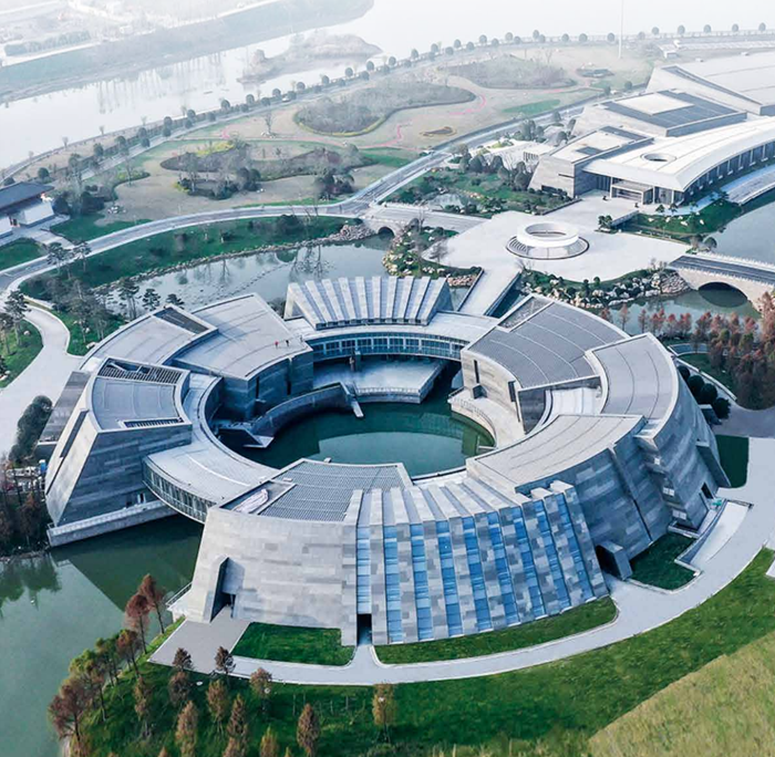 南京上秦淮國際文化交流中心是南京未來科 技城貫徹落實(shí)省市區(qū)黨委、政府要求,著力 提升園區(qū)國際水平,加快發(fā)展會展產(chǎn)業(yè),更 好承接全球未來網(wǎng)絡(luò)峰會等國際會展項(xiàng)目而 重點(diǎn)建設(shè)的國際化載體,將打造成為全球未 來網(wǎng)絡(luò)峰會永久會址。建筑主體委托建筑界 領(lǐng)軍人物姚仁喜建筑師設(shè)計,設(shè)計的最大亮 點(diǎn)在于古典與現(xiàn)代的融合碰撞,整個建筑風(fēng) 格鮮明,既不失中式意境之美,又科技感十 足,同時與周邊的景觀有機(jī)融合。