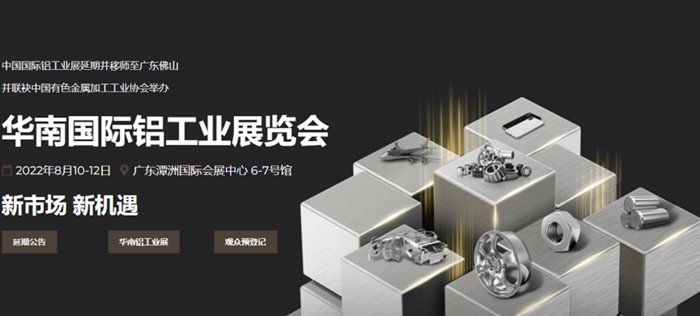 為進一步落實新型冠狀病毒感染肺炎疫情防控工作,更為保障展商、觀眾及合作伙伴的身體健康、生命安全及參展、觀展效果,經主辦方審慎評估,原定于2022年7月6-8日在上海新國際博覽中心舉辦的中國國際鋁工業展將延期至2022年8月10-12日并移師廣東佛山潭洲國際會展中心與中國有色金屬加工工業協會攜手舉辦華南國際鋁工業展,同時2023年中國國際鋁工業展仍將回歸上海舉辦。