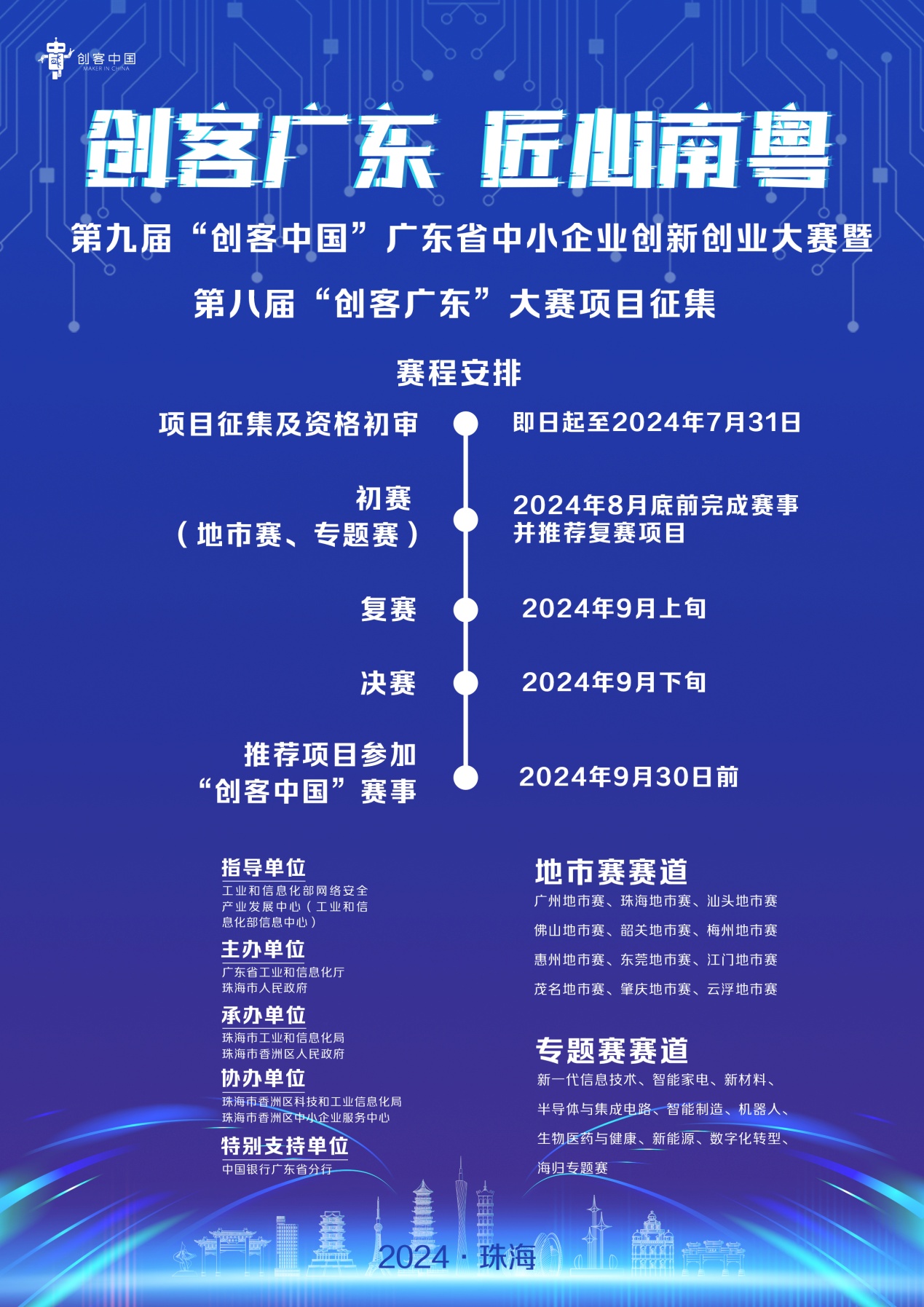 南海之濱,千帆競發(fā),新質(zhì)生產(chǎn)力在這片創(chuàng)新熱土蓬勃發(fā)展,為高質(zhì)量發(fā)展注入強大活力。近日,省工業(yè)和信息化廳和珠海市人民政府聯(lián)合舉辦的第九屆“創(chuàng)客中國”廣東省中小企業(yè)創(chuàng)新創(chuàng)業(yè)大賽暨第八屆“創(chuàng)客廣東”大賽正式啟動。大賽以“創(chuàng)客廣東匠心南粵”為主題,于今年7月至9月在廣東珠海舉辦。符合條件的企業(yè)和創(chuàng)客(以下統(tǒng)稱參賽者)均可通過“創(chuàng)客廣東”大賽官網(wǎng)注冊登記,報名參加地市賽或?qū)n}賽。