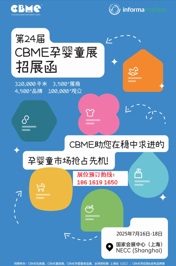 「CBME 孕嬰童展」(以下簡(jiǎn)稱(chēng)「CBME」)始于 2001 年,至今已在中國(guó)成功舉辦了 23屆。CBME 孕嬰童展作為全球知名的孕嬰童全渠道商貿(mào)服務(wù)平臺(tái),每年在上海舉辦。CBME 在中國(guó)取得巨大成功的同時(shí),已擴(kuò)展至土耳其、印度、印度尼西亞等國(guó)家,致力于推動(dòng)和促進(jìn)全球孕嬰童產(chǎn)業(yè)的國(guó)際交流與貿(mào)易合作。目前,CBME 已成功舉辦了數(shù)百場(chǎng)高質(zhì)量的行業(yè)活動(dòng),包括會(huì)議、培訓(xùn)、賽事、私人配對(duì)會(huì)、行業(yè)獎(jiǎng)項(xiàng)以及行業(yè)報(bào)告發(fā)布等。2025 年,CBME 將繼續(xù)在年度展會(huì)之外,于全年不同時(shí)段及地區(qū),舉辦眾多精彩的行業(yè)活動(dòng),助力孕嬰童行業(yè)、泛母嬰領(lǐng)域的新發(fā)展。